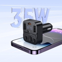 Автомобильное зарядное устройство Hoco E87 USB/ Type-C 35W c дисплеем и FM-модулятором black